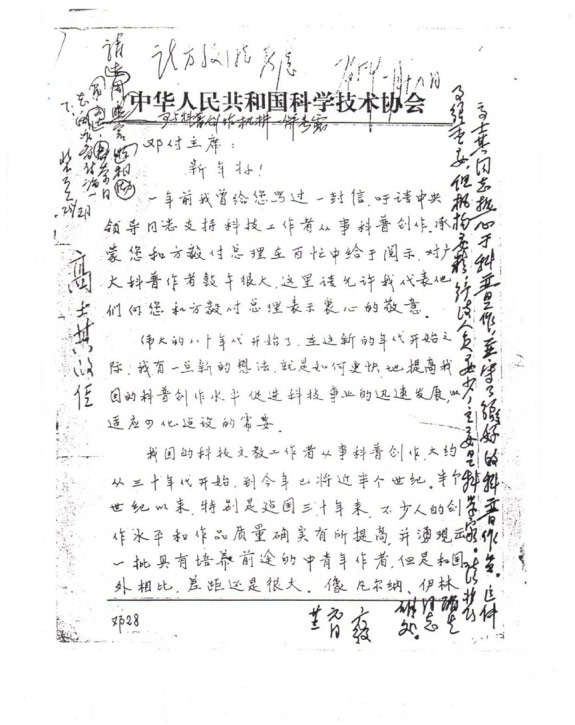 高士其给邓小平同志写信