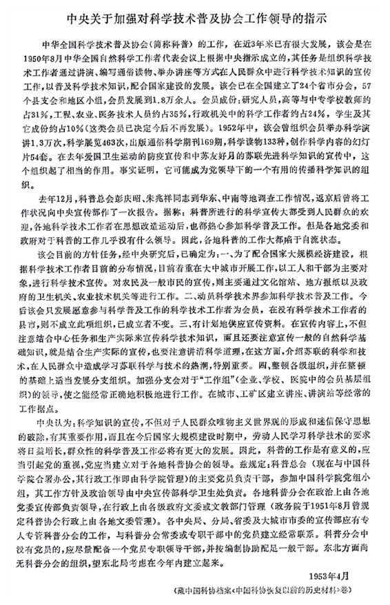 不仅是对新中国科普工作的