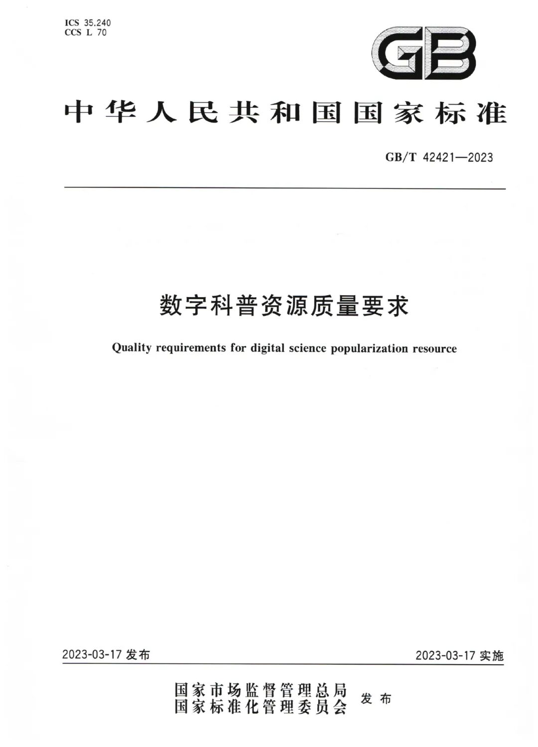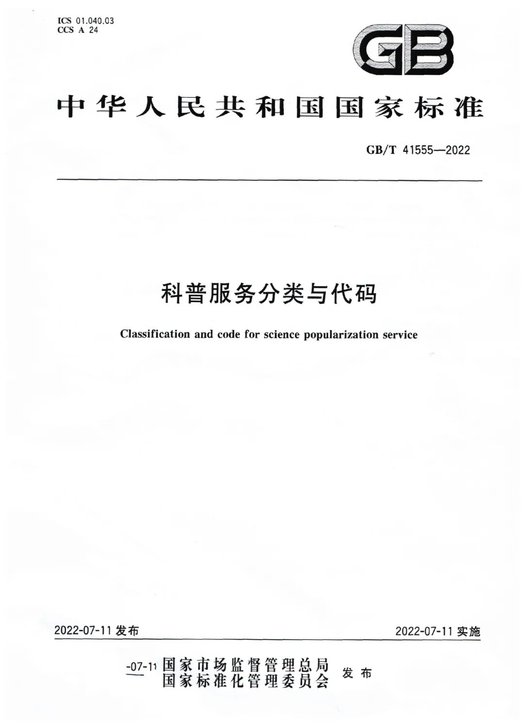 已发布实施《科普服务分类与代码》等8项国家标准