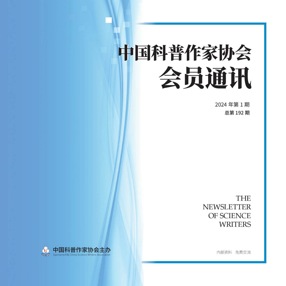 《中国科普作家协会会员通讯》2024年第1期(总第192期)已经发布,欢迎广大读者阅览! 电子杂志在线浏览: 《中国科普作家协会会员通讯》2024年第...