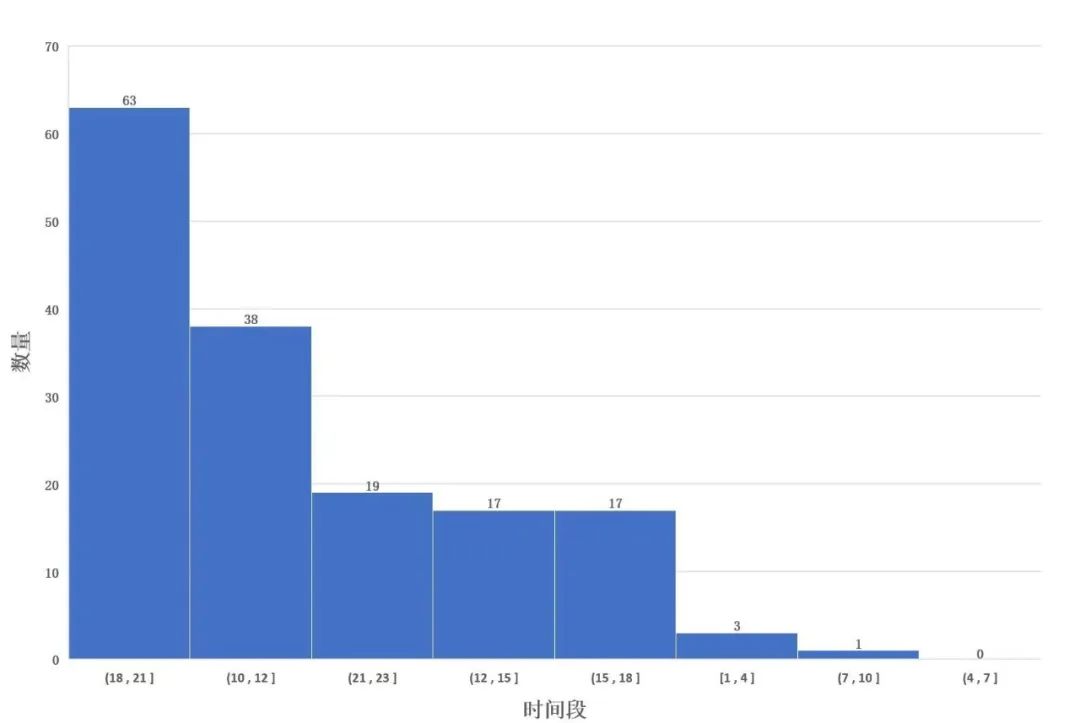 账号“无穷小亮的科普日常"最早在哔哩哔哩网站上发布视频的时间是2019年12月26日,自此,该账号在B站的粉丝数与影响力与日俱增。在Excel中,将生命科学类科普视频进行分箱处理(将24小时分为8箱),得到如图1所示排列图。