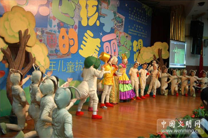 北京市史家小学分校学生表演情景剧《酷蚁安特儿历险记》。中国文明网 胡栋 摄