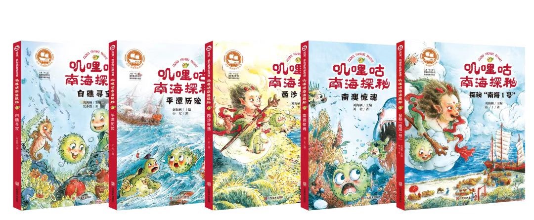 这是我第一次带团队创作科学童话。为了保证全书系的人物、内容和风格的一致性,须做好前期策划的必要的工作。首先恶补海上丝绸之路的历史知识、水下考古的发展过程,以及中国先进的水下打捞技术,并将有关知识按照时间线排序,规划出故事线;然后设计人物及其小传作为整个书系的贯穿;写出样张供其他作者参考。这是一个非常烧脑的劳动。需要分享的经验是,在团队创作过程中,前期策划环节占有非常重的分量。假如前期策划不过关,作者再努力都不会有理想的结果。这套书的创作难点有两个,一是人物多是指定的,必须使用,限制了作家的想象力;二是水下考古资料非常少,知识积累过程需要作者花费大量心血。但是,由于整个团队都是由儿童文学获奖者组成,有着深厚的人文知识积淀和童话写作功力,使得书系能够顺利完成。2021年,名为“叽哩咕南海探秘”的5册系列套书由山东美术出版社出版。这套作品的推出得到了中国科普作家协会周忠和理事长和陈玲秘书长的大力支持。套书入选了国家“十三五”国家重点图书出版规划,2022年读书节中国科普作家协会推荐的原创科普图书书单,2022年农家书屋重点出版物推荐目录,并输出了英文、韩文、阿拉伯文等8个语种版权。