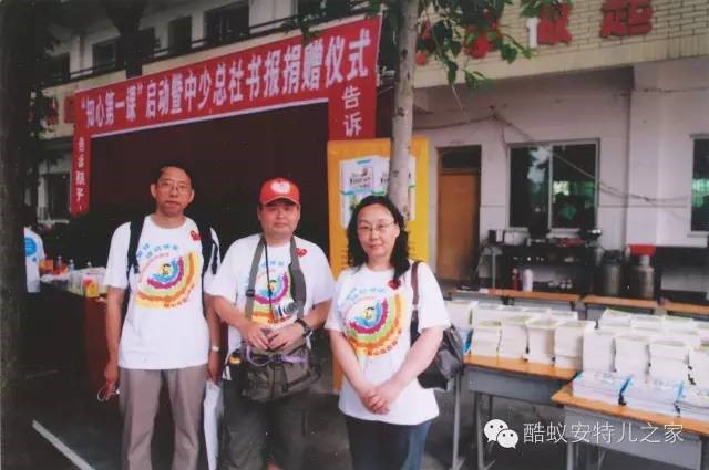 2008年,霞子和中国少年儿童出版社的知心姐姐卢琴、王洪涛、袁建国老师一起去灾区讲学赠书