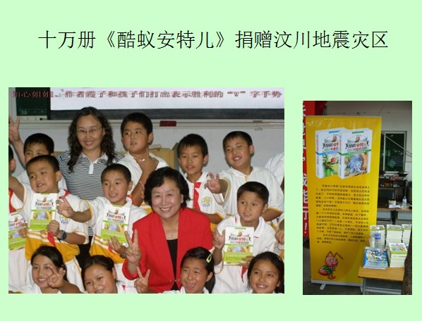有采访者会问,为什么给小学生写这么长的大书呢?主要原因有两个。一是进入21世纪后,伴随家长对孩子教育的重视,以及多媒体的迅速发展,少年儿童的知识积累和阅读能力大大提高,他们对作品内容的丰富性、趣味性、知识性需求明显增强;二是国家鼓励发展动漫产业,而动漫产业需要内涵丰富且具有后延性的优秀文学原创作为种子。假如科学童话能转化成科普动漫产业,将会使得科普从被动推助,到市场主动需求的转化,富有意义。关于科普动漫产业化的前景,我曾在《浅谈新时期科普动漫的产业化发展》中进行过探讨。我认为孩子是天生喜欢故事的,没有孩子不喜欢读书,孩子只是不喜欢那些引不起他们兴趣的书。所以,我选择给孩子写大部头的书,让内容尽量丰富,努力讲好故事,并希望对孩子的影响更深远一些。 事实证明,这个思路是对的。“酷蚁安特儿”已经成为一个有知名度的少儿科普品牌。2008年汶川大地震,中国少年儿童出版社和作者一起给灾区的孩子捐赠了10万册《酷蚁安特儿历险记》,灾区孩子们的读后感和作品一起被国家博物馆收藏。