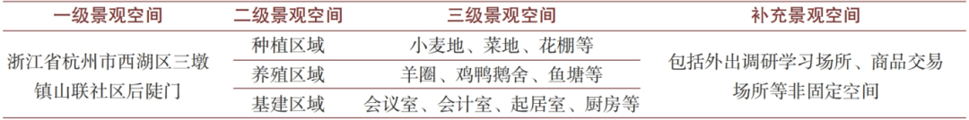 以《种地吧》第一季为例,该季节目中主要通过三个层级的景观空间进行科普内容植入——节目拍摄取景地浙江省杭州市西湖区三墩镇山联社区后陡门作为一级景观空间,种植区域、养殖区域和基建区域共同构成二级景观空间,各区域内相应的具体劳作和生活空间视为三级景观空间。此外,由于节目中的农业生产活动并不局限于上述三级空间,即景观空间具有流动性,因此,外出调研学习场所(中国农业大学、水培基地等)、商品交易场所(农夫市集、快闪市集等)等成为补充景观空间形态,同样为节目带来了丰富的农业科普知识(表1)。