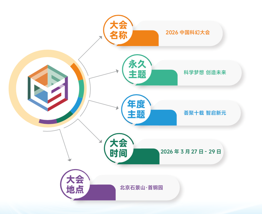 2026中国科幻大会由中国科协、北京市人民政府共同主办,以“荟聚十载 智启新元”为年度主题,设置忆十载、聚共识、兴产业、向未来四大核心板块。