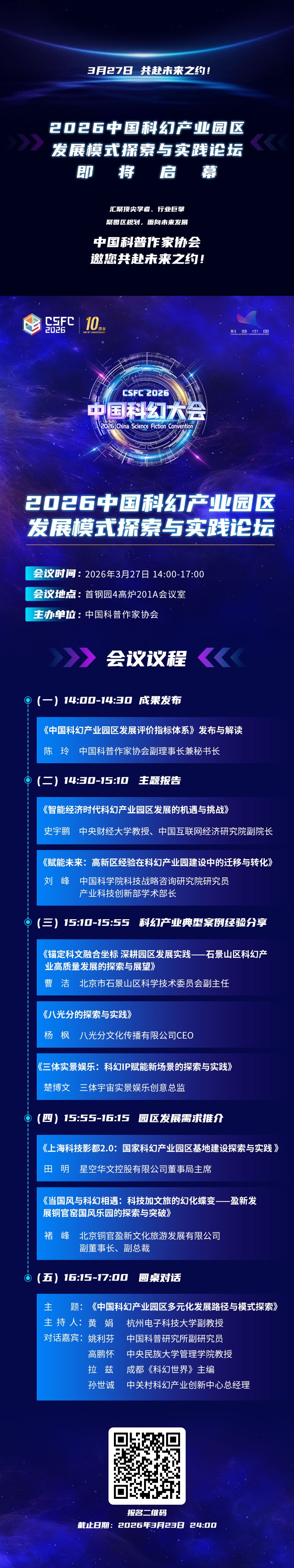 2026中国科幻产业园区发展模式探索与实践论坛即将启幕